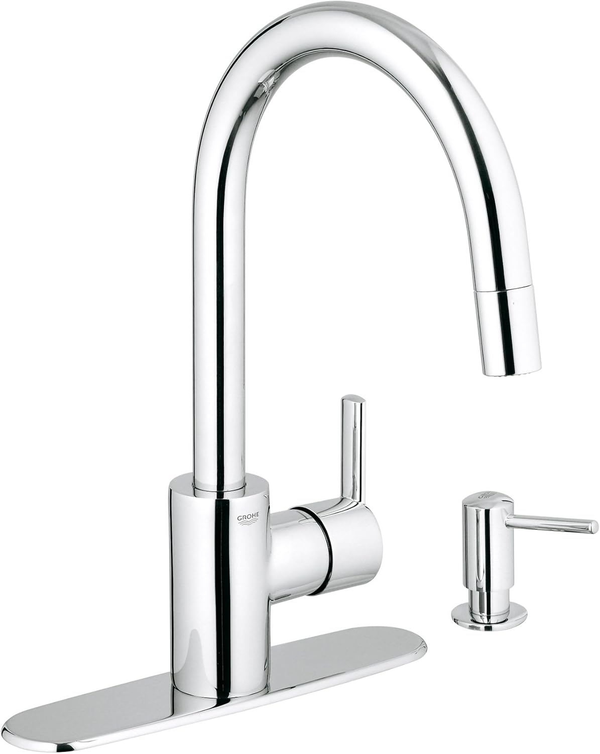 Essence 1.75 gpm single hole pull out kitchen faucet with dual spray, speedclean, easydoc, and silkmove technology. This one also comes in chrome or steel finishes to adhere to the rest of your kitchen décor. Innovative features also help it stand out in a crowded market place. The best water experiences aren't just for the bathroom. The grohe essence faucet is one of the best choices for a kitchen that sees a medium or high amount of use.