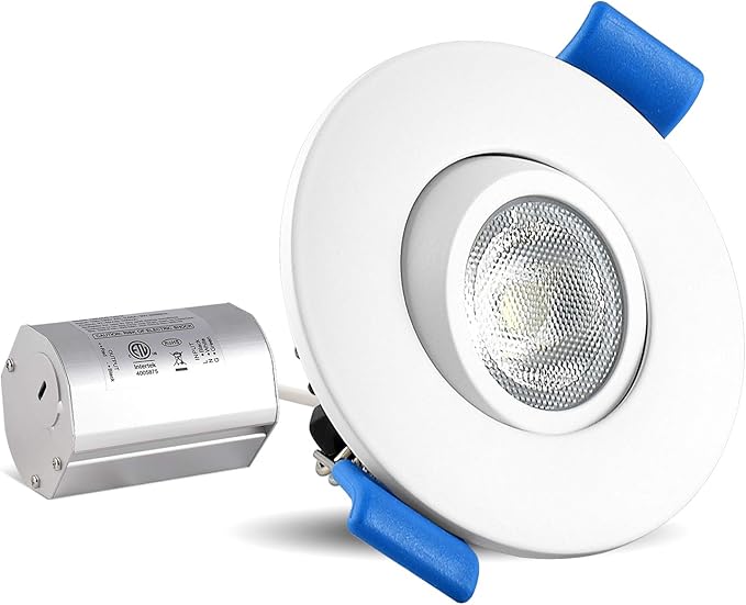 White integrated led recessed ceiling light fixture adjustable gimbal trim 90 cri, 2700k warm white.